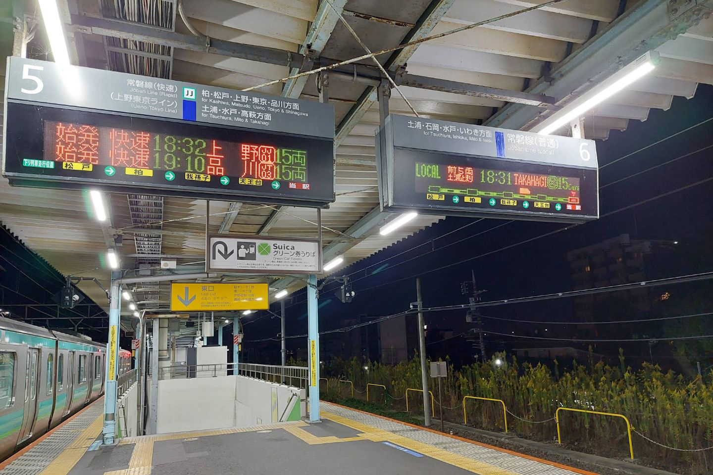 - 土曜・休日ダイヤ(年末年始期間含む)の常磐線(各駅停車)は我孫子始発となるため、1・2番線ホームから発着する列車はない(前述の通り通行は可能)。