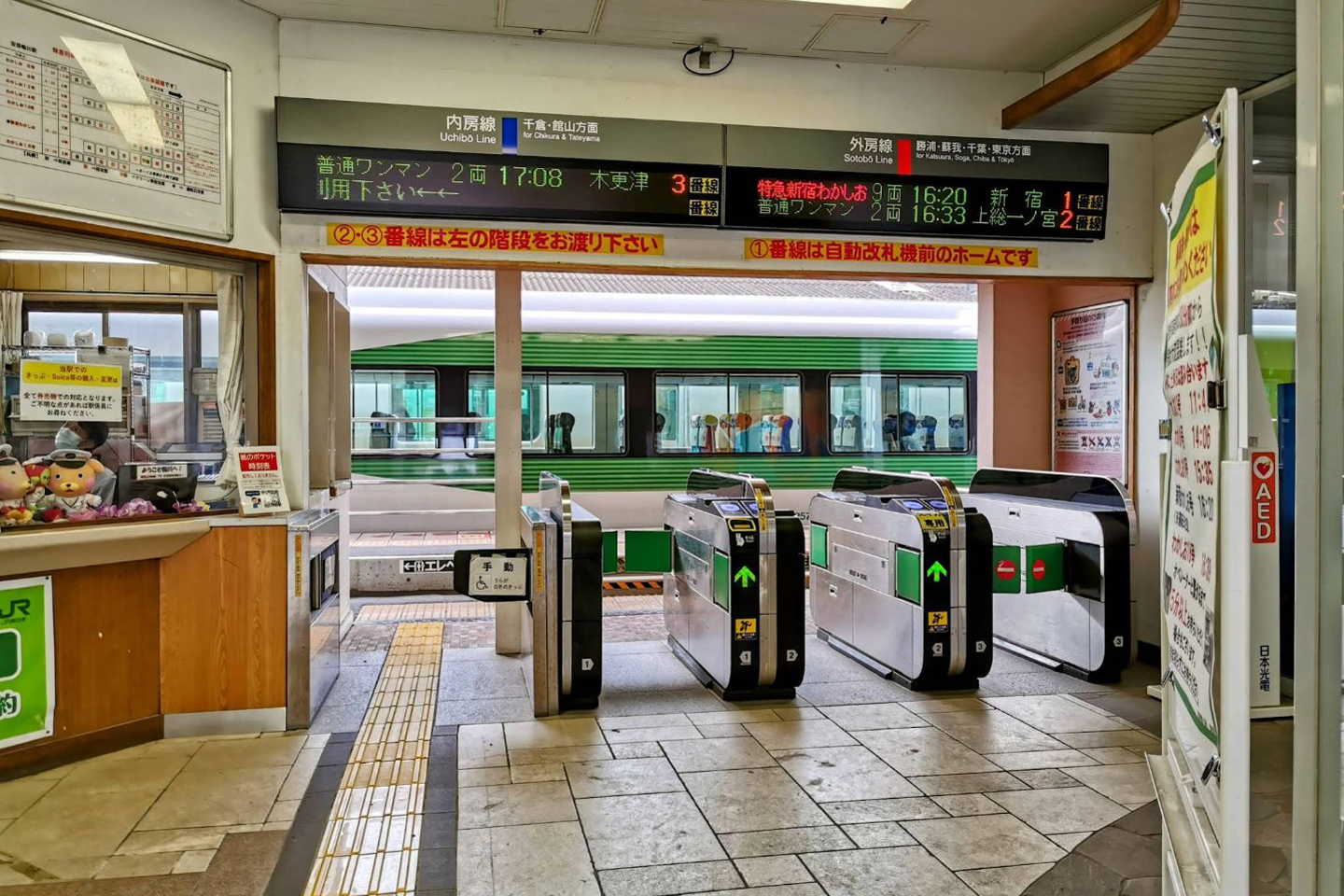 内房線は普通列車のみだが、外房線は普通列車の他特急「わかしお」も当駅まで来ている。