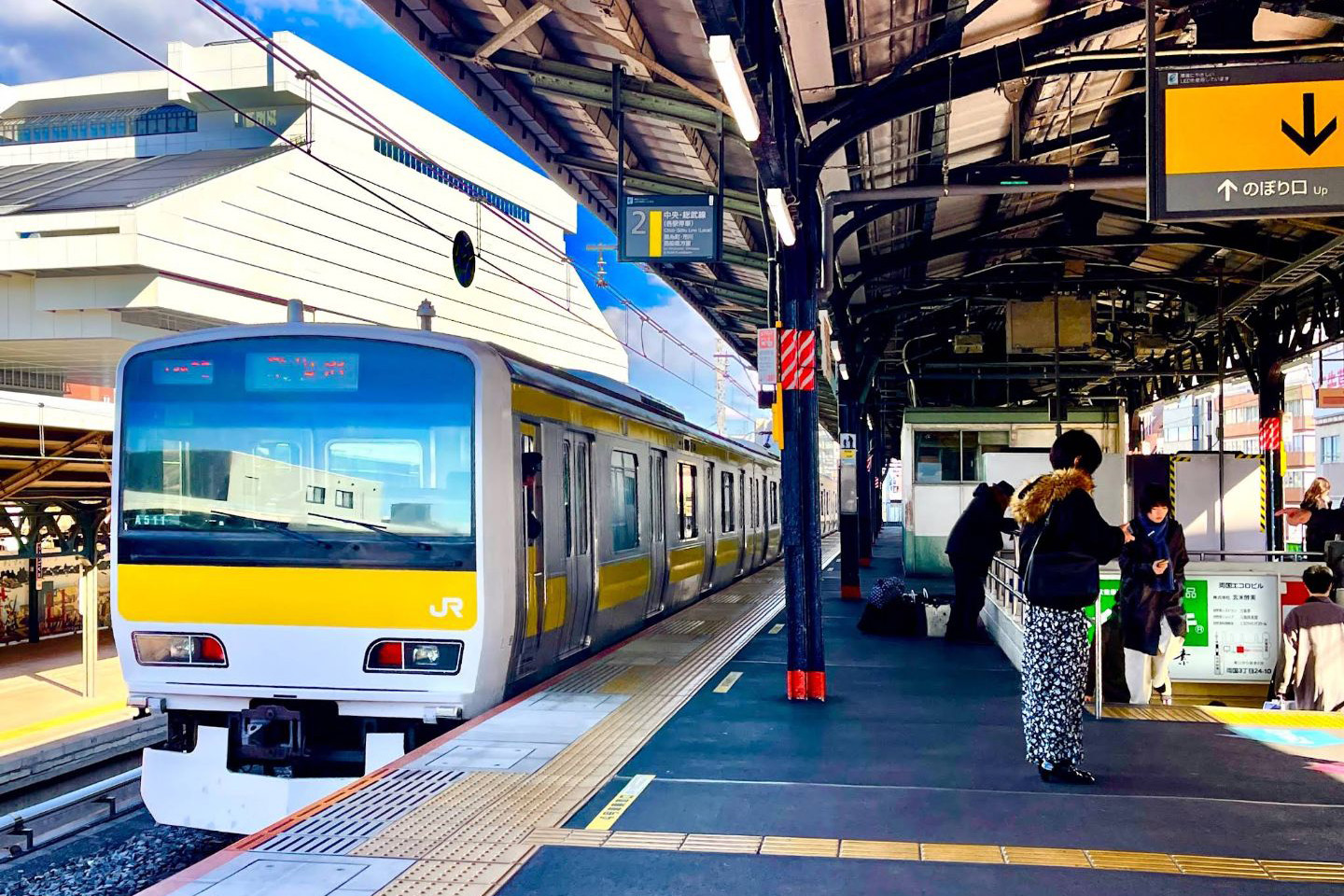 JR東日本の駅は、定期列車は緩行線を走る中央・総武線各駅停車のみが停車する。この他、千葉方面の快速線に接続している列車ホーム(後述)が存在するが、現在は臨時列車のみに使用される。