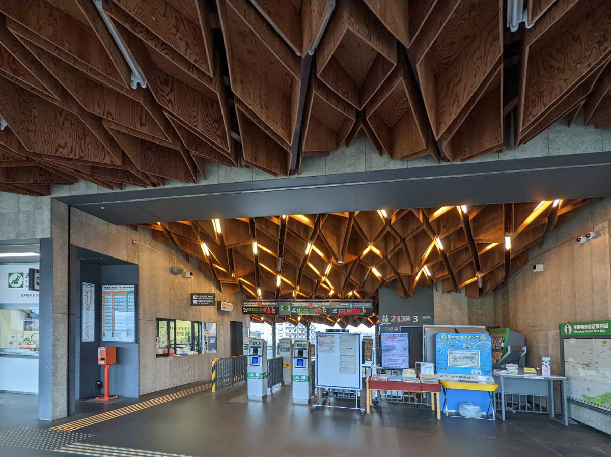 駅舎は2008年3月に竣工した橋上駅舎で、駅舎および自由通路は隈研吾建築都市設計事務所によって設計された。