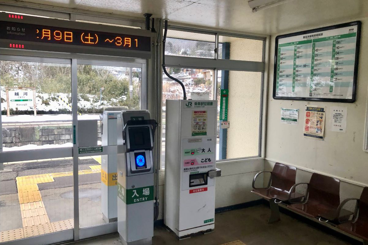 越河駅(こすごうえき)は、宮城県白石市越河字五賀(ごか)字海道下(かいどうした)にある、東日本旅客鉄道(JR東日本)東北本線の駅である。